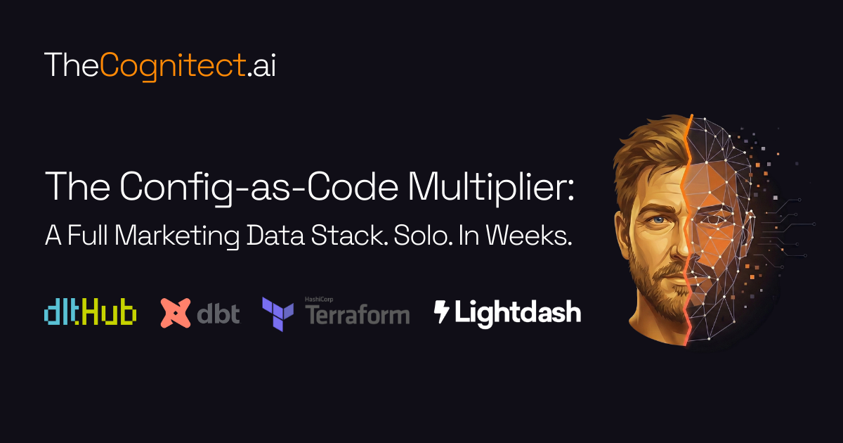 Config-as-code tools turn AI agents into force multipliers. Here's how I built a complete marketing data platform solo in weeks.